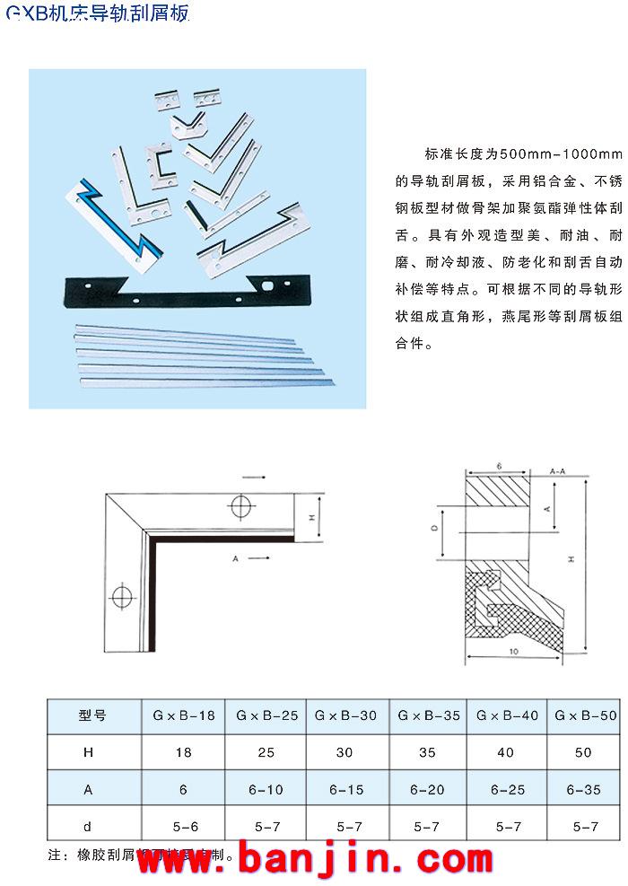 刮屑板具有外形美观、耐油、耐磨,提高机床导轨面的刮屑、除尘、防
